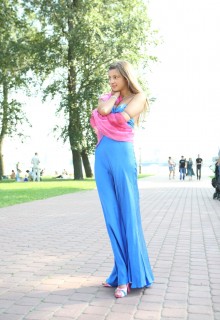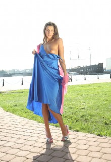 It was a warm summer day when Melena decided to go on a walk by the shore. She had a satin blue dress on which made her glow and everyone was looking at her. Then she went to the park to relax herself by fingering her tight shaved pussy.